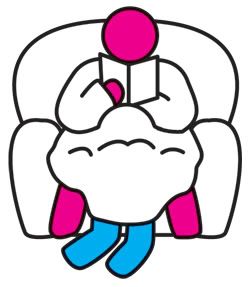 She puts her arms through the sleeves and reads. She’s minding her own business. He is also minding her business.